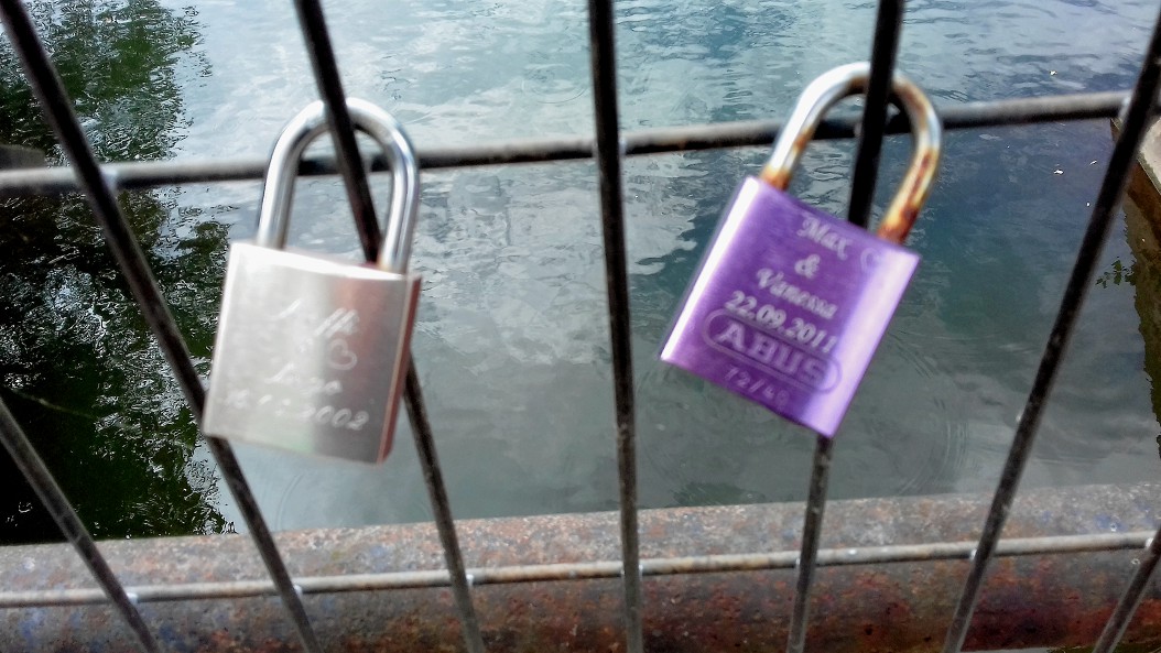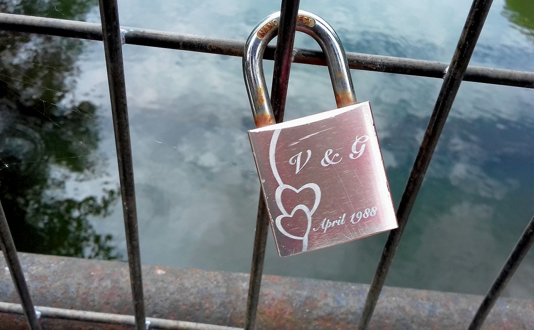 Kleine Vorhängeschlösser mit den Namen oder Initialen von Liebenden—sind auf Brücken auf der ganzen Welt zu einem gewohnten Anblick geworden.
